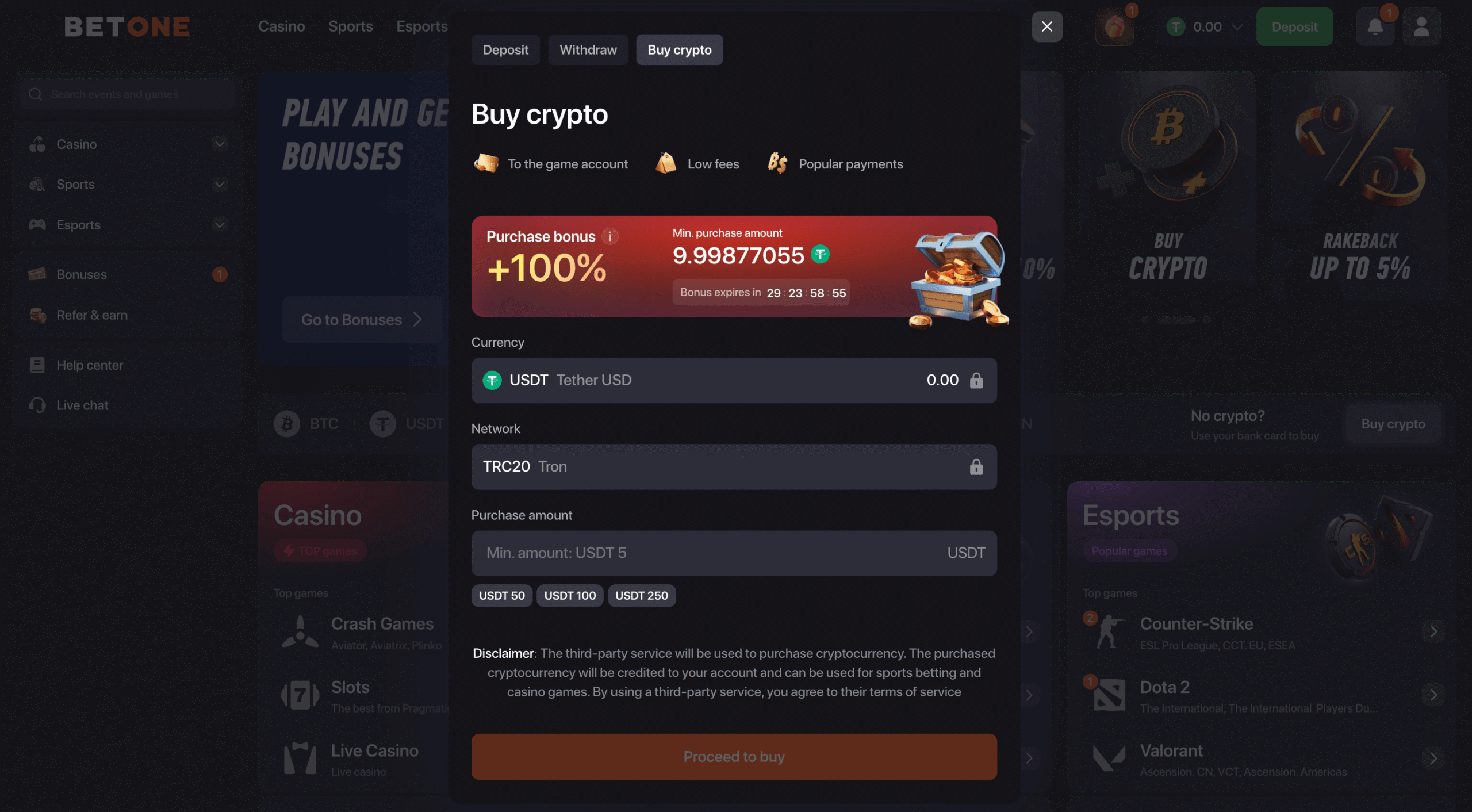 Purchase a small amount of cryptocurrency to fund your first gambling session. Start with $20-50 to minimize risk while learning.